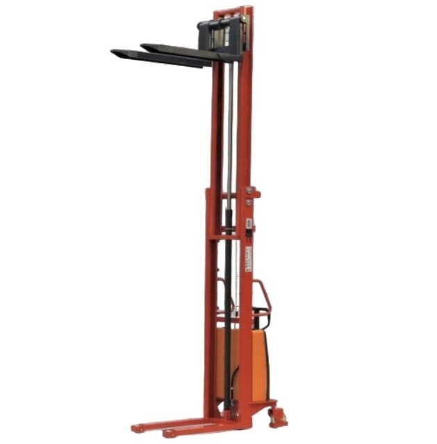 The stacker can lift loads up to 1000kg.